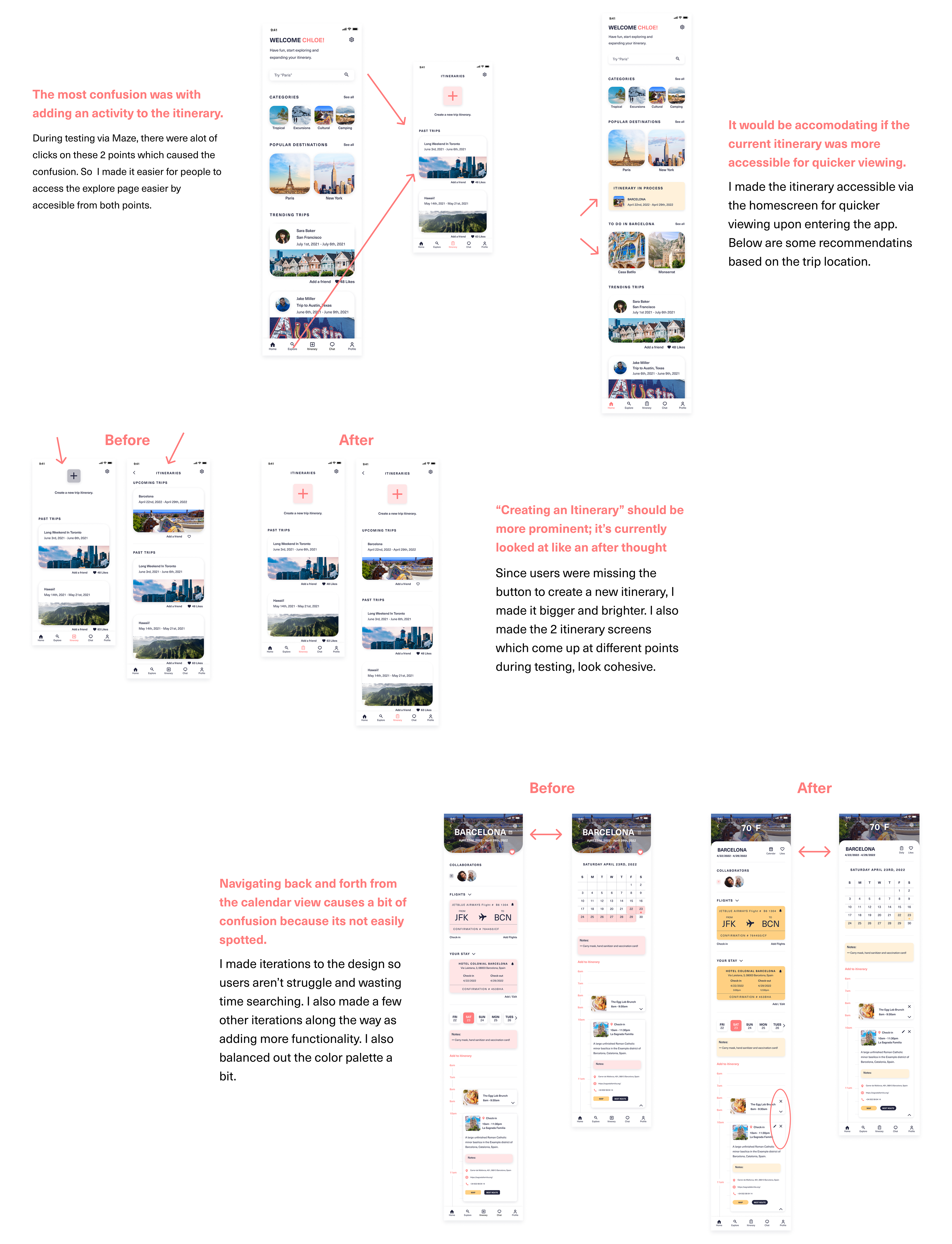 I then expanded that for the user flow and showcased the flow Chloe took to adding more content to her itinerary for her Barcelona trip with a few decisions along way.