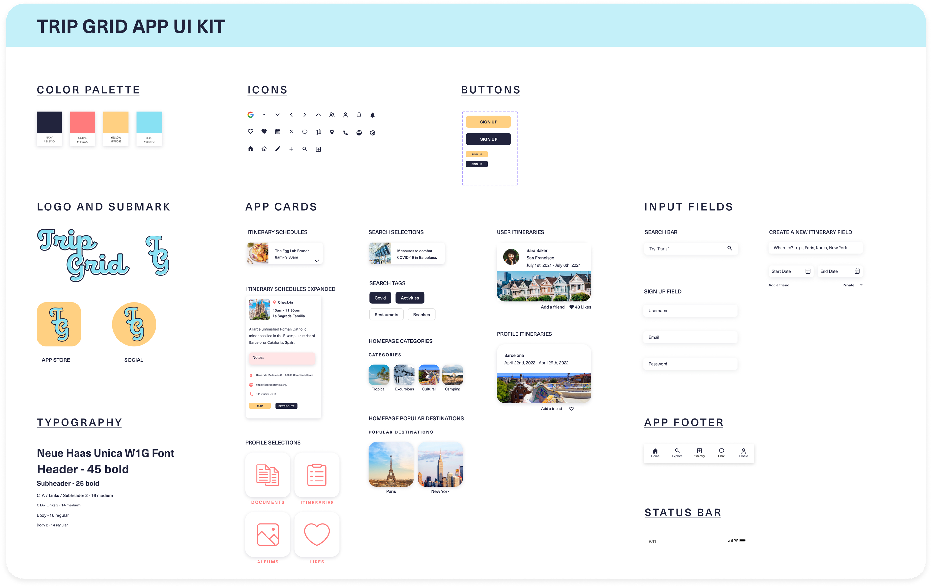 The UI Kit is a compilation of all the elements and components need to build out the wireframes. It was created to ensure designs stay consistent and it also provides reference for future designs or iterations down the line.